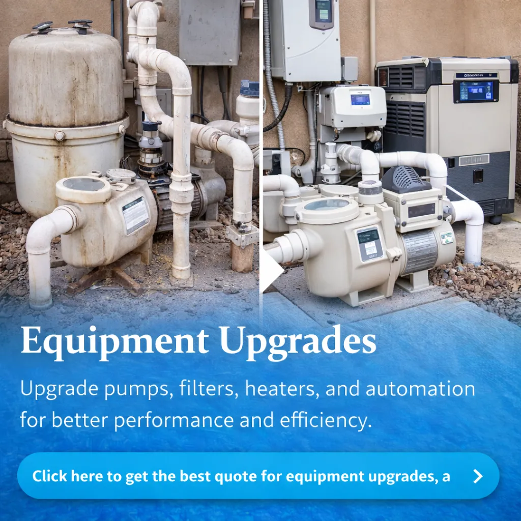 Upgrade pumps, filters, heaters, and automation for better performance and efficiency. Click here to get the best quote for equipment upgrades, automation, and energy efficiency!