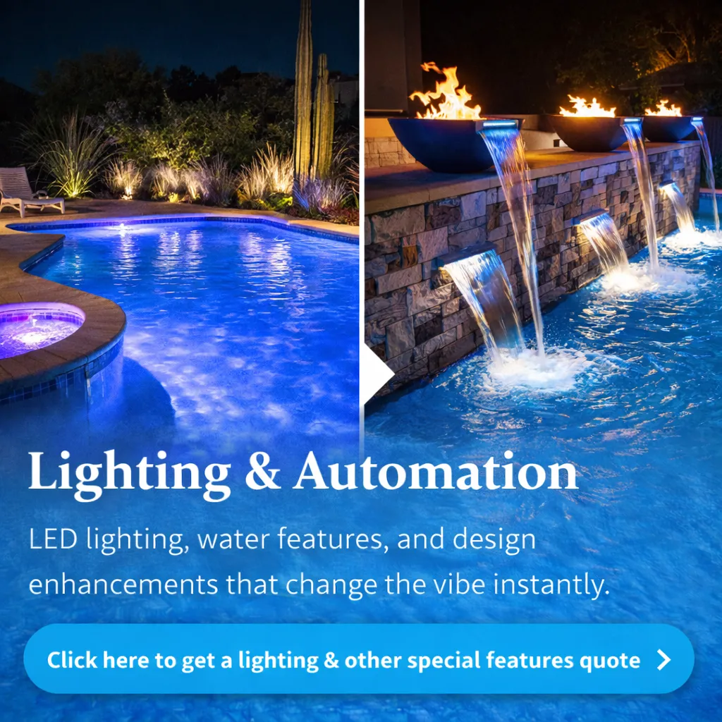 LED lighting, water features, and design enhancements that change the vibe instantly. Click here to get a lighting & other special features quote!