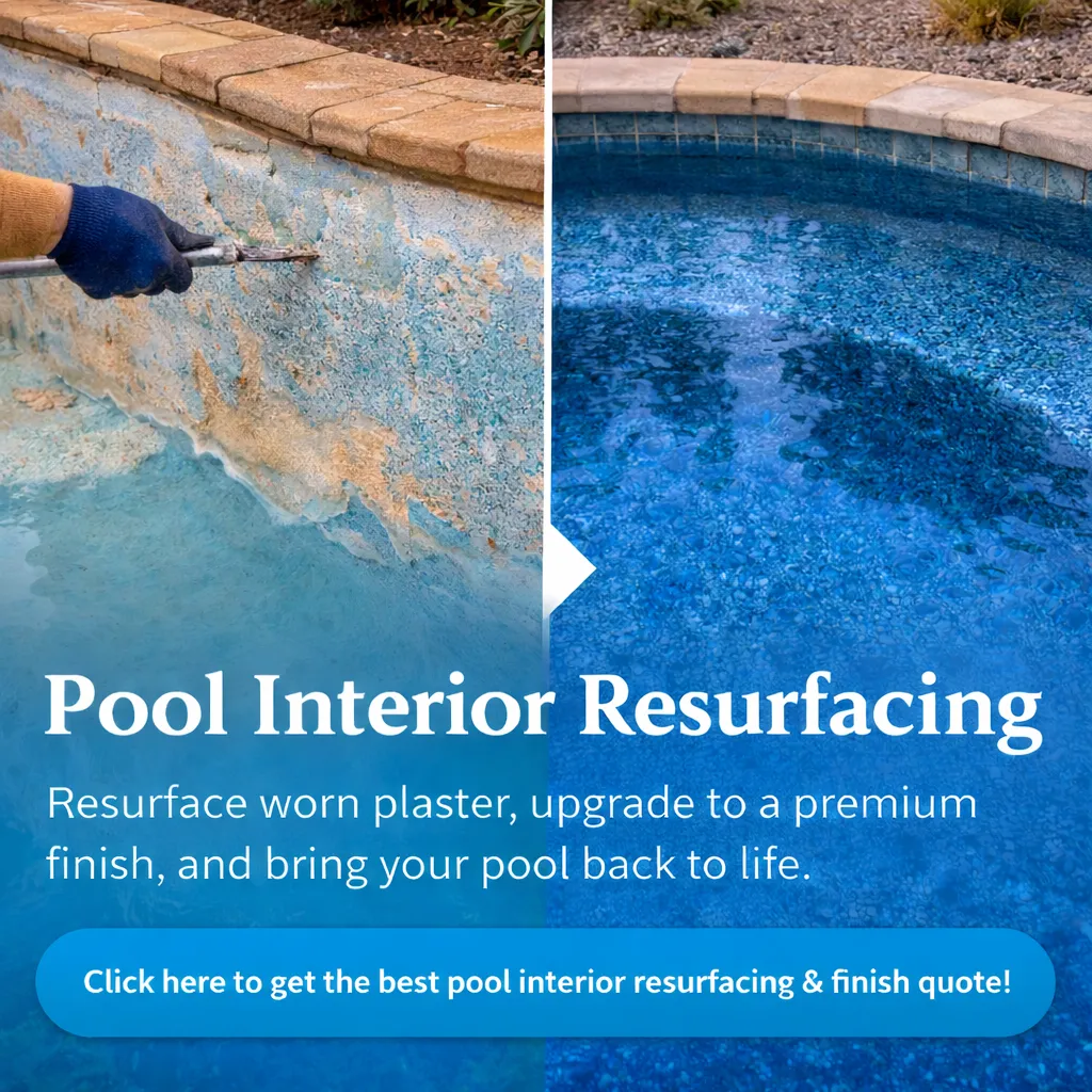 Resurface worn plaster, upgrade to a premium finish, and bring your pool back to life. Click here to get the best pool interior resurfacing & finish quote!